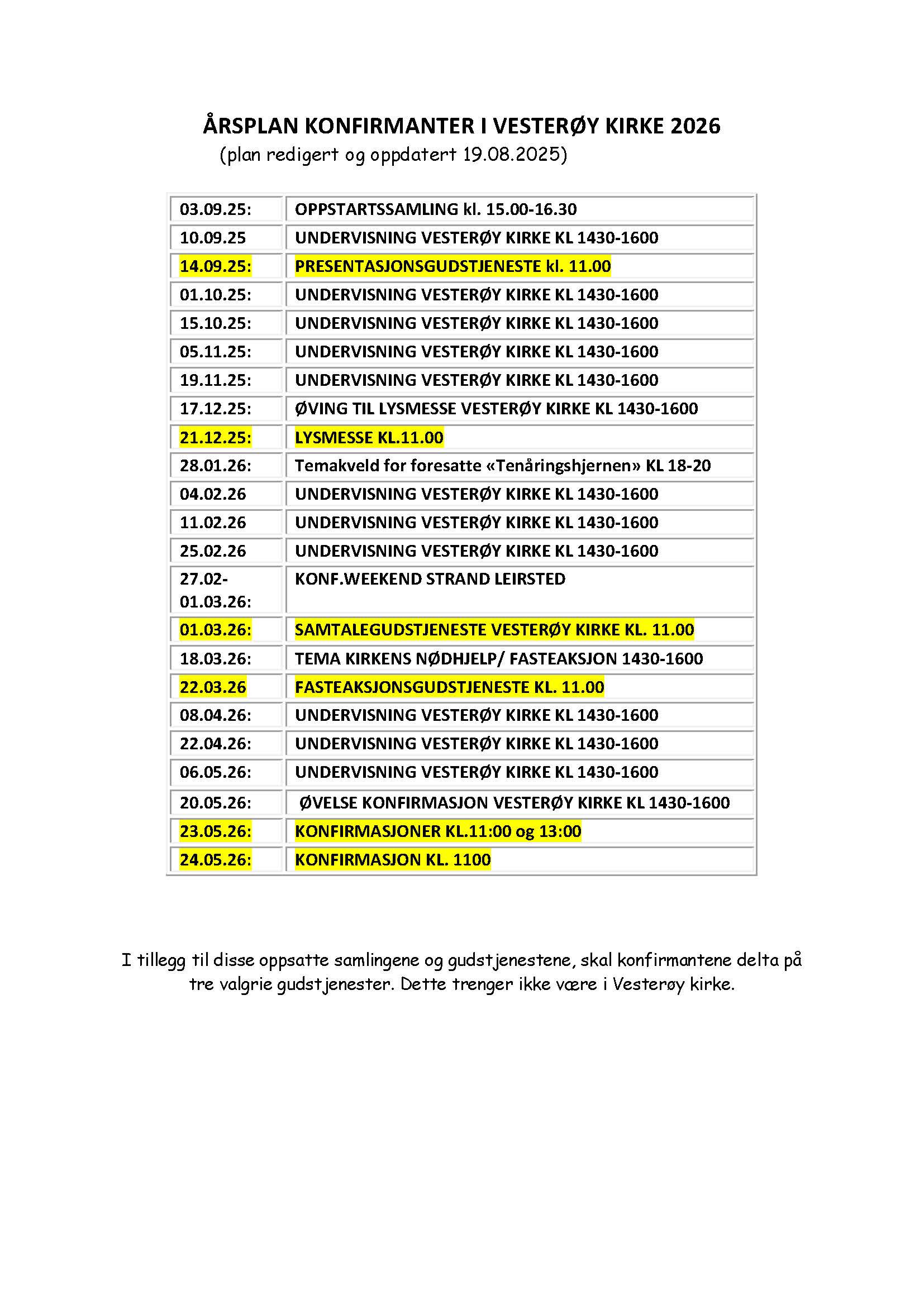 Alle samlinger er en del av konfirmasjonstiden som utgjør 60 timer